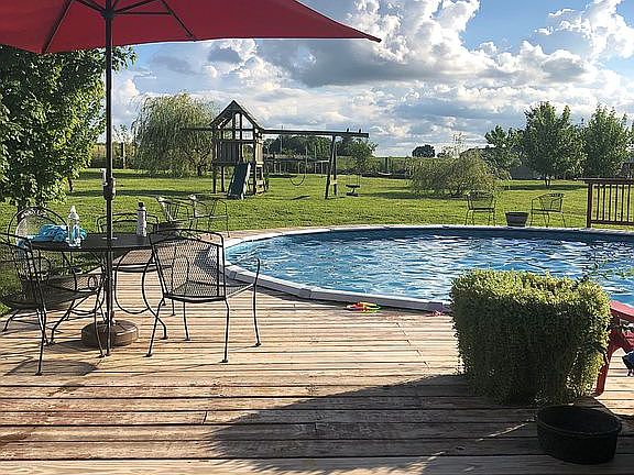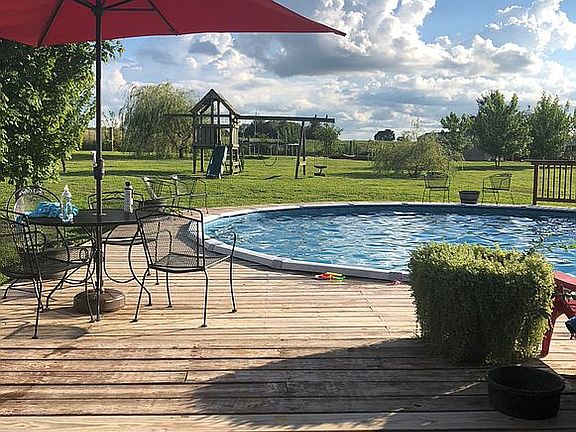 Beautiful 7 acres with newer 5 bedroom, 3 full bath 2 story home with covered front porch. Open Great Room with vaulted hardwood ceilings & beautiful stone fireplace. Charming Kitchen with island/bar area, great pantry, range, dishwasher will stay! 1 bedroom on second floor or could be used as a bonus area. Nice windows overlooking the country side. Maple and maple finished hardwood flooring greats you at the entry, Large Dining Area may also be used as a Keepers Area or office