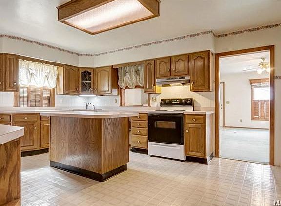 Sought after St Charles City location! Over 1600 sq ft of character and charm! The kitchen is literally the heart of this home featuring a center island w/ breakfast bar, loads of raised panel cabinets and ceramic backsplash. In front of the kitchen is a large room that could easily be used as a formal living room or dining room. Behind the kitchen is a large vaulted family room that's perfect for entertaining friends or relaxing with family. There are 2 nicely sized bedrooms on the main floor with overhead lighting/fans & hardwood floors under carpet. Add'l hardwood floors under carpet in front living room & hallway. The upstairs bedroom is a must see. It's huge w/ gorgeous hardwood flooring, picture windows, and fun ceiling lines! The full basement provides ample storage and utility sink. Outside the charm continues; o/s garage, level fenced yard, updated vinyl siding, enclosed soffits, fascia, and architectural roof. Home needs minor TLC; carpet, paint & dishwasher. Call today!