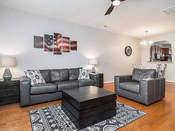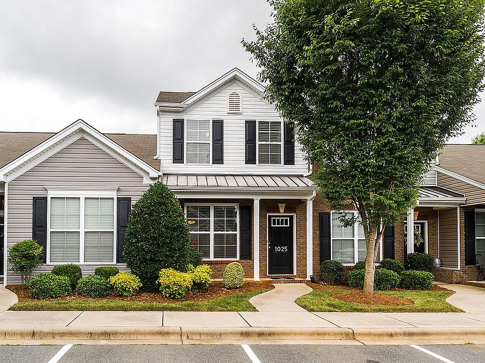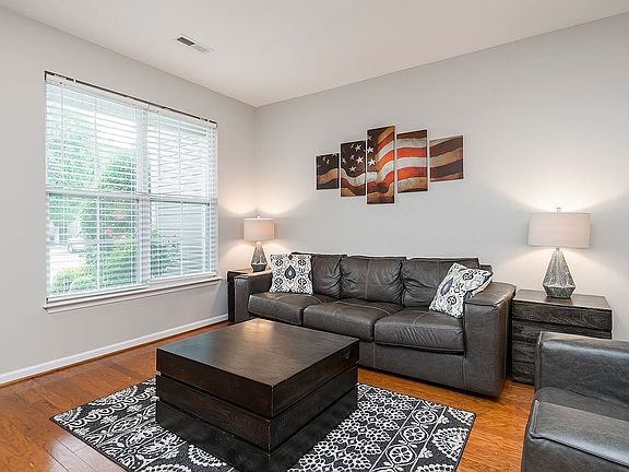 Crisp and clean townhome with fresh paint, all new blinds and updated light fixtures; This townhome feels spacious with hardwoods in the Living/Dining Areas; Pass-thru to kitchen; Kitchen has smooth-top range, disposal, dishwasher, microwave, refrigerator & eat-in island; Convenient built-in desk area off kitchen, along with pantry, coat closet and half bath; Upstairs has a spacious Master Bedroom with vaulted ceiling, large walk-in closet and ensuite bath with garden tub/shower combo; Bedroom 2 also has an ensuite bath with tub/shower combo; Nice size laundry closet is located in upstairs hall with ample space for full size, side-by-side washer/dryer; Back patio off kitchen, along with storage area; Ownership includes access to all the amenities - pool, tennis courts, basketball courts, enormous pool, club house, fitness area, amphitheater & tons of sidewalks for outdoor exercising; Convenient to I-85/40, shopping, grocery stores and more.
