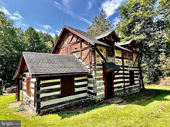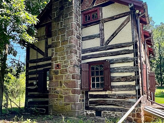 If you're looking for a property with history and character, this will fit the bill. Located on the back side of South Mountain on a partially wooded eight acre lot, this property would be perfect as a weekend getaway, artist studio, or historic home. Originally a one story log structure, the property was purchased by Joseph Hendel whose family owned a large hat manufacturing business. The Hendels hired a local architect who added the 2nd story, designed with half timber construction known as fachwerk as a summer residence and named the property "Hendel Manor". The main floor consists of a wide center hall with front entrance door along with a door at the back leading into the rear yard. The adjoining living room features beamed ceiling, working wood fireplace, and plenty of windows with working wood shutters. The kitchen area features a peaked ceiling along with a door to a side porch. Upstairs you'll find a large walk thru room, big enough to use as a bedroom or sitting room. There is also a spacious private room. Of note- this historic property has never had any indoor plumbing for a bathroom or a central heating system, as it was primarily used as a summer residence. The property does have the acreage for a septic system along with expansion of the original structure. The property also features a shed for equipment and, small stream towards the back of the lot, and a spacious yard for entering.