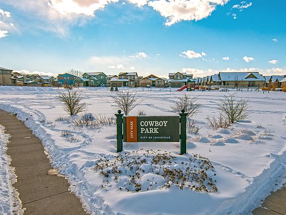 This beautiful 2 story home is located in the coveted Steel Ranch neighborhood directly across from Cowboy Park. South facing light and bright open floor plan. Granite counter tops, stainless steel appliances and large kitchen island ideal for entertaining. Custom stone fireplace, designer colors and built-in cubbie storage in the mudroom. Upstairs laundry room and loft area. Builder finished basement that includes a rec. room. Located walking distance to downtown Louisville.