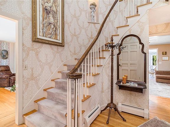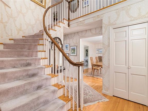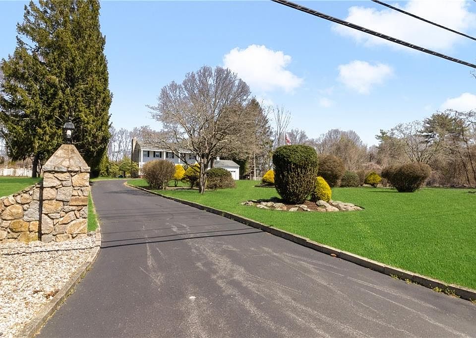 Estate like setting for this Southern style center hall colonial which has a circular driveway and stone walls to accent the parcel on this pristine and private 1.5 acre lot with fabulous plantings, gazebo and inground pool! This property is a gardener's delight for your own summer oasis. This gracious 3 bed 1.5 bath house with hardwood flooring on the first floor has a large front to back fireplaced living room, family room with built in bookshelves, formal dining room and ornate circular staircase leading to 2nd floor bedrooms. Large eat in kitchen has granite counters and tile floor. Laundry is conveniently located in the kitchen area near door to attached 2 car garage. The centerpiece of this home is the spectacular heated half circular sunroom with skylight for year-round living which is bright and cheerful even on a dreary day. This one owner home was custom built and has been well loved through the years enjoying many family gatherings and festivities. Located near all amenities and easy access to highways.