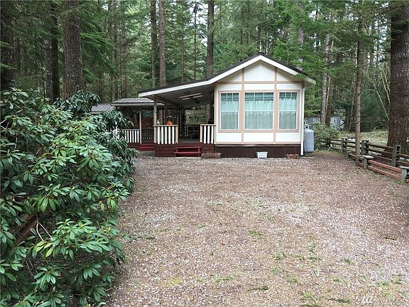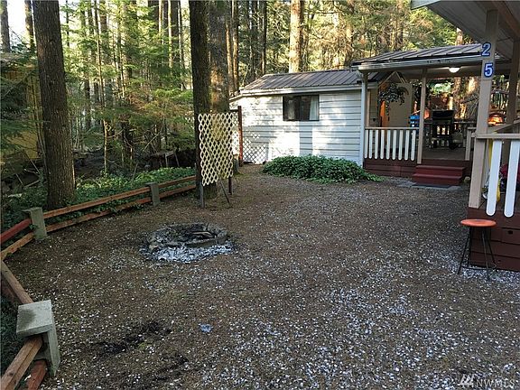 1992 furnished park model, bunkhouse & shed in Campers Paradise. Through lightly wooded forest, to cul-de-sac. Driveway, w/room for RV, leads to your home away from home. Walk up stairs to covered deck, through sliding door to picture window LR, into kitchen (full size refrigerator & much storage), by bathroom (full toilet & tub/shower), & into your bedroom (mirrored closet, built-in cabinet). Back door to deck. Bunkhouse w/separate covered deck. Private BBQ area. Trail to clubhouse w/pool.