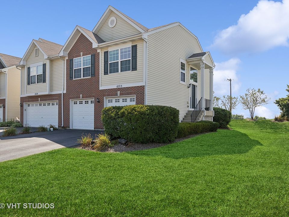 Are you looking for a spacious 3 bedroom, 2 bath, 2 car garage end-unit townhome in desirable Torino at Tuscany Woods? Enjoy all the storage in this nice kitchen with upgraded maple cabinetry. The open sunlit main level has a living room, kitchen, two huge bedrooms, a loft area with new laminate flooring, full bath, and dining area! Lower level offers a sizeable, freshly painted family room with sliding glass door to the patio, a full bathroom plus another freshly painted bedroom! Relax and enjoy unobstructed views from the concrete patio! Move in to this growing community and enjoy all that Hampshire has to offer! Come see it now!