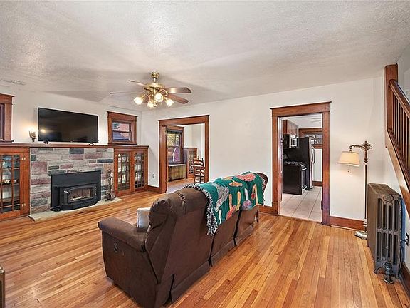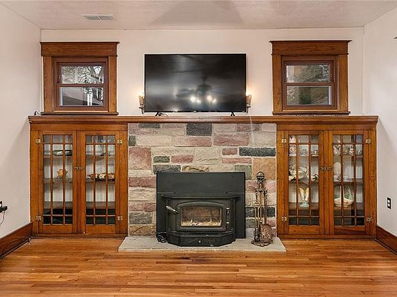 This gorgeous four bedroom brick home sits high above the town of Bridgewater and the Beaver River, offering a river view from all three levels. 1025 Market Street boasts modern updates throughout, while maintaining the home's original charm and character. Many of the home's original details can be found throughout the home - hardwood floors, living and dining room built-ins, interior French doors, and more. The main level's floor plan feels both open and cozy. The spacious living room offers tons of natural light and is centered around a stone wood-burning fireplace. The formal dining room features built-in cabinets and French doors that lead to the living room. The four seasons covered porch is heated, so you can enjoy the view year-round! Upstairs you'll find three of the home's bedrooms and the large full bath - complete with a separate tub and walk-in shower. The third floor can be used as the fourth bedroom, additional living space, or an office. Fenced-in backyard and garage!