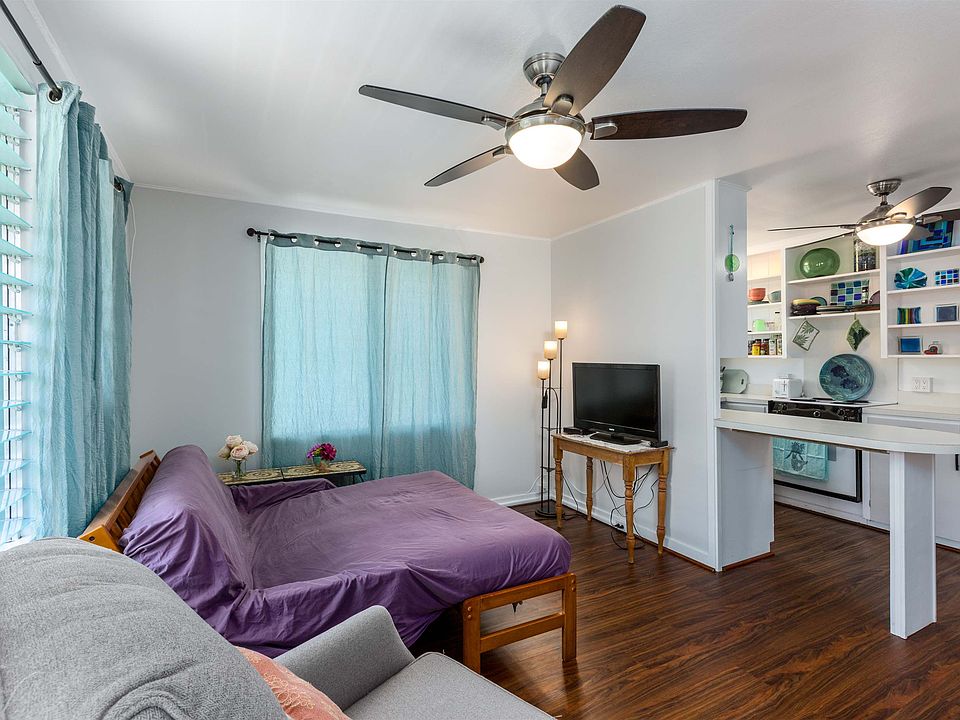 This bright and charming 1 bedroom, 1 bathroom home with assigned covered parking has to be experienced in person. Countless upgrades, including new ceiling fans and refrigerator, new flooring throughout unit, a full electric panel and water heater replacement, and recent renovations to the kitchen and bathroom make this beautiful home stand out. Incredible location and windows on 3 sides of the condo allows you to take advantage of the almost constant tradewinds to cool your home, as well as ensuring close proximity to restaurants, shops, schools, groceries, and so much more. One bedroom homes in this development are rarely available, so don't wait!