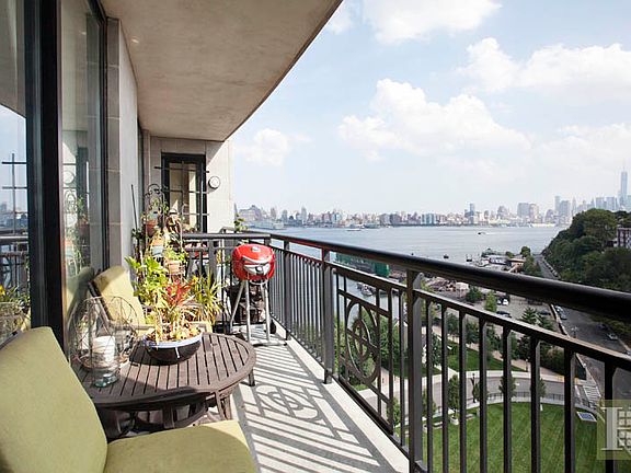 Sun-filled two bedroom condo at Maxwell Place with 1317 SF, 2.5 baths, a balcony, deeded garage parking and Southern exposure with wide open views over lower Manhattan the Hudson River and Elysian Park. This 11th floor home has an open layout with a spacious kitchen which features a large island with granite countertops, cherry cabinetry with additional built-in storage, Kitchen-Aid Architect Series appliances and a gas range. The large master bedroom features an oversize glass door with access to the balcony, two sizeable custom closets and a five-fixture limestone bath with a double vanity, soaking tub and a separate shower. The second bedroom also offers an en-suite full bathroom. Other highlights include hardwood floors, custom window treatments and a state-of-the-art integrated central heating and cooling system designed so the maintenance fee covers hot water and most heating/cooling costs. Basic cable and internet are also included in the maintenance fee along with use of all of Maxwell Place's world-class amenities including a 24-hr concierge, two rooftop pools, two fitness centers, spin room, two children's playrooms, shuttle service to/from the Hoboken PATH, beautifully landscaped rooftop gardens, several sundecks, BBQ areas and courtyards featuring stunning panoramic NYC views, an open-air fireplace, outdoor TV , theatre room with stadium seating, yoga room and two spectacular private residents' lounges. Maxwell Place is located just two blocks to the NY Waterway Ferry to NYC, one block to Washington Street and adjacent to Maxwell Place Park, the Hudson River waterfront walkway and historic Elysian Park.