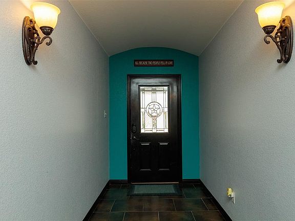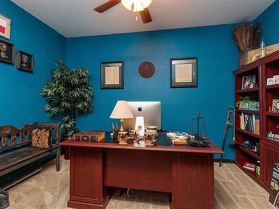 Unique home with long curved ceiling the full length of the entrance hall leads onto the open concept living, kitchen and breakfast area with accent wall. Large 18 in tile through out the home with carpet in the bedrooms. Master has a unique domed ceiling that has lights that cast a elegant look on the ceiling. Enjoy the large covered patio and a brand new fence. Corner lot.