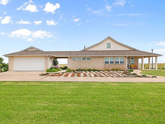 Willing to work with/compensate Buyer's Agent. Beautifully designed custom home with open spaces and majestic views. Designed by the current owner, this unique dwelling is perfectly positioned on a double-lot with 0.61 acres with a quiet and private location backed-up to rolling farm land and angled perfectly for panoramic horizons. Meant as a forever home for easy and practical living, the layout is open and modern with vaulted ceilings throughout. Sky-lights illuminate incredibly spacious and inviting living areas that surround a central fireplace and gathering room. You will be blown away with the amount of light and openness this home provides. With the charming covered porch, you will be able to enjoy the wide-open views and summer breezes, even on the hot days. This well-planned 2,268 sq. ft. home is all one level with 3 beds, 2 baths with Jack and Jill sinks, and a private, offset office area. The entryways and bathrooms provide modern access to those of any age. The pocket doors and sliding fair-doors also provide exceptional level of access and space throughout. A dream kitchen with a gas stove, double-ovens, a large open pantry, and custom cabinets and counters that provide plenty of space for culinary delights and entertaining. The mudroom with utility sink provides a place to cleanup after spending time gardening or just a day out on the town. It is attached to the covered breezeway connecting the fully-accessible, detached two-car garage. Brand-new roof with the best high-impact SBS modified IR Shingles. The house is also dually insulated with 2X6 frame instead of 2X4 and high-grade, double-layered radiant barrier insulation. This significantly helps with the hot summers and cold winters. Whether you're hosting or simply enjoying the sanctuary and peace this home has to offer, come visit and explore the ways this home can become your creative space. https://creative-angles-photography.aryeo.com/sites/johnny-klaassen-ave-ok-73048-9980075/branded
