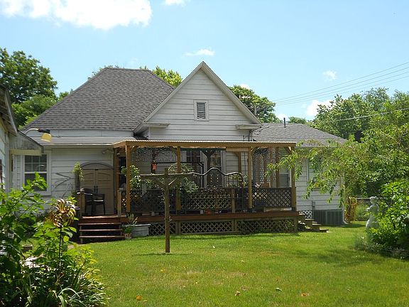 MANY updates and renovations since original listing... with extensive floral landscaping.. 3BR, 2BA, family room, formal dining, eat-in kitchen, large utility / laundry room, 25 x 12 ft covered back deck, hardwoods, most windows replaced with energy efficient thermo panes, upgraded/newer heat/air/water heater, sided exterior, newer architectural shingled roof/decking, newer lighting and plumbing, chain link fenced, oversized 3 lots with 3 double-gated access, carport, 1 car garage, storage barn, concrete floored storm cellar, covered wood deck, front porch, convenient location.