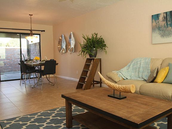 Immaculate designer inspired townhome in an ideal eastside location. Tastefully remodeled and updated with special attention to detail. Beautiful kitchen features stainless steel appliances fresh white cabinets and ample natural light. Additional interior features include ceramic tiled floors throughout dual paned windows and sliding glass doors newer attractive fixtures plus recently professionally painted. Remodeled bathrooms include newer vanities toilets fixtures tile surrounds and lighting. All of this plus a new heating and cooling system. You'll love the private covered patio and spacious laundry room with storage. Close distance to shopping bus lines and restaurants. Community pool and attractive grounds. Don't miss this excellent opportunity!
