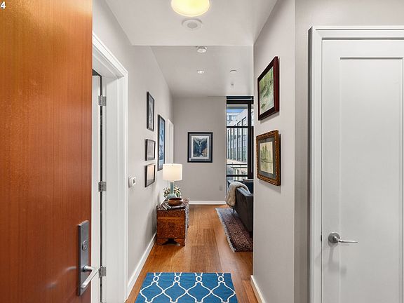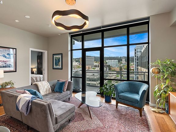 A vibrant downtown life is yours when you call Henry 1115 your home. This west facing one bedroom home is the highest unit of its floorplan type available in the building. Enjoy a smart layout, with perfectly scaled rooms. Open concept living space features elegant dark stained hardwood floors, high ceilings, and access to a private patio with views of the city and the West Hills beyond. The kitchen is huge and provides a gourmet cooking experience with an upgraded Bluestar Range, ample storage, honed granite countertops, and a large center island with lots of workspace and bar seating. There is a custom wine storage cabinet next to the kitchen as well as a wine cooler within the center island. A spacious primary bedroom also has hardwood floors, a walk in closet with custom organizers, and a convenient niche that's perfect for a desk / workspace. One deeded parking space and one large in-building deeded storage unit are also included. Secure building with callbox entry and full time concierge. Prime location with Streetcar on the block, Powell's Books across the street, and Whole Foods just a block away. Check out the Virtual Tour link for more!