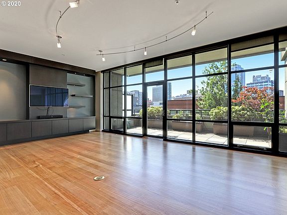 Stunning unit in one of Portland's most prestigious residencies, the Henry Condominiums. 1 bedroom + den (or flex space) unit includes an open great rm w/floor to ceiling windows, built-ins, track lighting & hardwood floors. Partially covered patio w/city views & plenty of space for entertaining. Master bedroom includes a bathroom w/dual vanity sinks & walk-in closet w/custom built-ins. Luxury amenities in the Henry include concierge service, deeded parking space, streetcar & close to Whole Food
