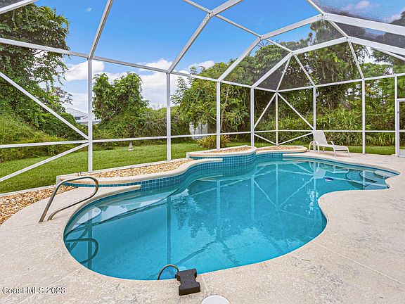 You won't believe your luck! A beautiful POOL home on nearly ONE ACRE! This home boasts 4 big bedrooms and a den/office. It has hard surface floors throughout, a huge, screened pool and lanai, an oversized garage, Newer Roof! Pass-through fireplace and all freshly painted! Close to beaches, KSC, Orlando and Airport! You will be close to everything but feel like you are in the countryside!