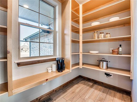Wide open kitchen/ living/dining gorgeous eating/prep bar, walk-in pantry, private master suite w/ spacious seasonal closet, utility/laundry access, 4 bedrooms, Above ground storm shelter/safe room; large covered patio/porch, "Oklahoma Garage"; superior quality, detail & craftsmanship in an awesome neighborhood.