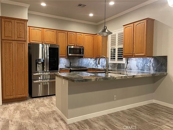 PRICE IMPROVEMENT!! BEAUTIFUL, TURNKEY and PRICED TO SELL - Welcome to the exclusive 55+ community of Solera at Oak Valley Greens, where luxury living meets exceptional amenities. This beautiful, crafted home offers approximately 1,687 square feet of fine living space. The home features two SPACIOUS BEDROOMS, each equipped with walk-in closets, providing ample storage for all your needs. Additionally, there is a third room, perfect for use as an office or a hobby room. The laundry room is fully equipped with a newer washer and dryer, along with a utility sink for added convenience and functionality. LUXURIOUS BATHROOMS: You must see the beautifully remodeled bathrooms featuring vessel sinks and standing showers with stunning tile work. The master bathroom is handicap accessible, ensuring ease of use for all. GOURMET KITCHEN: Step inside to a beautifully designed kitchen adorned with granite countertops and a stainless steel undermount kitchen sink. The kitchen boasts top-of-the-line stainless steel appliances and abundant storage space, making it a culinary delight for any home cook. The entire home features UPGRADED FLOORING, adding to the luxurious feel. Don't forget to take time to relax and enjoy the sunroom, a perfect spot for unwinding with a good book or enjoying the fresh air. The home is equipped with leased SOLAR PANELS and TESLA BATTERIES, ensuring ENERGY EFFICIENCY and reduced utility costs. Lease agreements for both solar panels and batteries will be paid by seller through close of escrow. Solera at Oak Valley Greens offers a plethora of AMENITIES including a 24-hour community guard, clubhouse, fitness center, pool, spa, tennis courts, bocce ball, billiard room, meeting and banquet rooms, mailroom, library, classes, clubs, and group trips. Basic cable is included with your HOA, adding to the convenience. PRIME LOCATION: The community is conveniently located near the I-10 freeway and is close to Palm Springs, Redlands, Cabazon Outlet Malls, Morongo Casino, shopping, entertainment, and more.