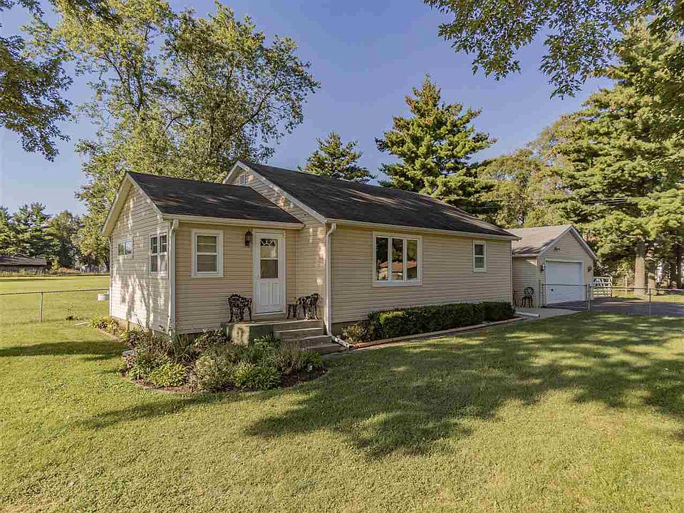 Nice home w/ 3 bdrms, updated bath and kitchen (19). Kitchen has breakfast bar and is open to the living room. Property is situated on 1.5 acres that is fenced in. New stove, fridge & w heater. 3rd bdrm has separate entry door, could also be den, office or fam rm. Fin space in LL. Enc porch and covered patio looking out to backyard. 2 car garage, Shed & 2 additional outbuildings. Sump pump (16) and updated septic system (16). One building is 32x24 and the other is 24x20 w/ covered patio area. Bring your toys! Great location!