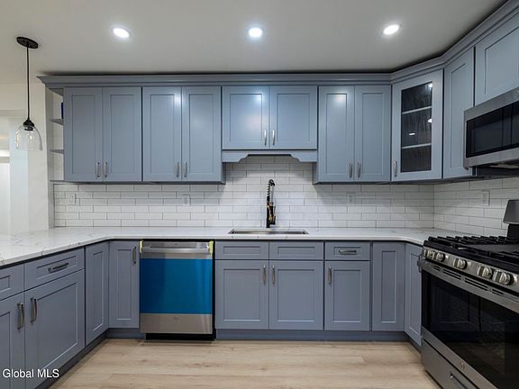 This completely renovated 3 bed, 2 bath single family home is located on a large corner lot in a quiet Rotterdam neighborhood within Mohonasen School District. It includes an attached garage and finished basement. The remodeled kitchen has all new stainless steel appliances, including dishwasher. The in-unit washer and dryer are conveniently located on the second floor near bedrooms.