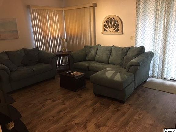 This first floor tastefully furnished unit is completely renovated with new floors, modern furniture and decor, fresh paint, and more. Master bedroom has a queen size select number bed and a connecting restroom. The second bedroom has a queen bed and a double bed. Total of 3 TVs in unit. Well stocked kitchen! Washer/dryer in unit. Three walkout balconies in unit which flow out into a gorgeous wooded landscape. Located very close to Hwy 31, and only 5-7 minutes to Cherry Grove Beach. Less than a mile to Seacoast Hospital. Indoor and outdoor pools and grilling area for your enjoyment! No smoking inside unit and no pets per HOA. Cable, water, and trash service included as well as pool amenities. Cable and water included. Use of pool as well