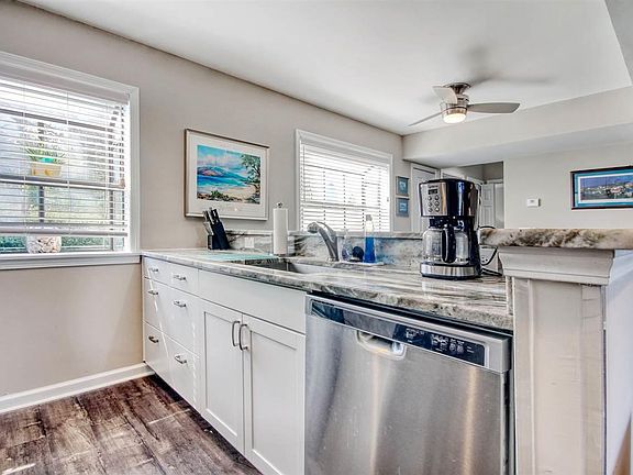 Check out your new home at the beach! Amazing opportunity to own this furnished remodeled ground floor 3 BR/2 BA lockout end unit at Baytree Golf & Racquet. Situated at the end of the community in a private setting with pond view, this villa boasts an open floor plan with luxury vinyl and tile flooring throughout; kitchen with white shaker cabinets, stainless appliances, beveled glass tile backsplash, hard marble countertops, deep bowl single sink; sizable living room with screened porch access; and spacious bedrooms, one with patio access and one with access to its own screened porch. Other features that make this villa so special are newer paint, abundant windows offering plenty of light, designer fans and recessed lighting, custom blinds, 2019 washer/dryer, 2018 water heater, 2018 HVAC in larger unit, smooth ceilings, newer interior doors and electrical outlet covers, and refrigerator, sink with hard marble top, and microwave in lockout. Located just minutes to the beach, Intracoastal Waterway and marinas, shopping, restaurants, golf, and entertainment, this villa is move in ready and waiting for you! Measurements are approximate and not guaranteed. Buyer is responsible for verification.