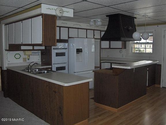 This house almost as it all. Nicely located with easy access to downtown, Grand Rapids, Greenville. Kitchen with appliances, pantry. Bathroom has a walking tub and shower.Large dining area with a natural gas fireplace and also a large living room with bay windowSlider door off the dining room leads to a 3 seasons enclosed sun room. Back yard is totally fenced in, a natural gas grill, a 32 x 18 heated in ground pool to enjoy during summer months.A fully furnished gazebo with 2 picnic tables.3 out buildings of which one is a 12 x 19 work shop with power. Rec room in the finished basement with electric fireplace, also a sauna and a partially furnished bonus room.