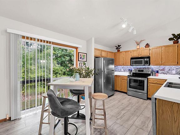Nestled on a serene cul-de-sac lot, this exquisite ranch home offers captivating tree views. An open floor plan with vaulted ceilings in the great room and kitchen creates a spacious ambiance. The modern kitchen boasts stainless steel appliances and a stunning glass tile backsplash. Washer and dryer included for convenience. A partially finished basement with a full bath and bonus room featuring a ceiling fan adds versatility. Updates: roof replacement with built-in blinds (2016), front door with safety glass (2016), basement repairs with transferable warranty (2016), and furnace replacement (2015) for comfort. Ideal home for everyone, this residence is near schools, shopping, and major highways. Embrace the opportunity to own this remarkable property and its desirable lifestyle. A true must-see!