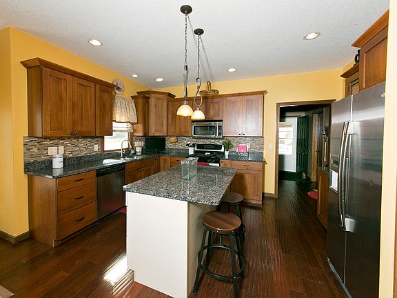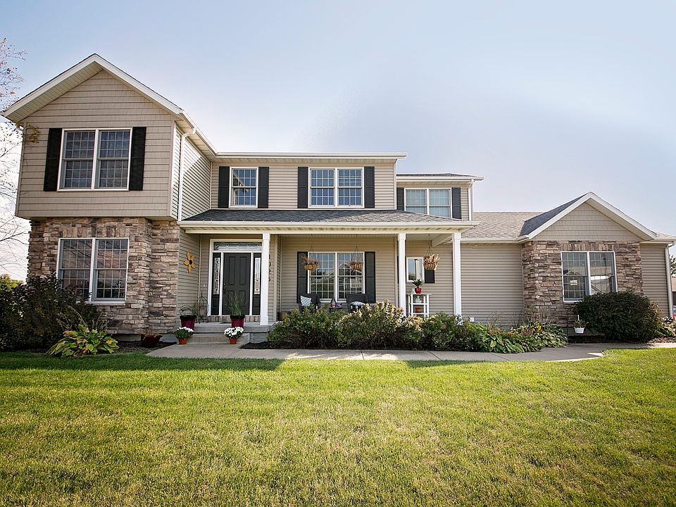 Eldridge Iowa Real Estate For Sale! Well Built 2 Story Home that is Conveniently Close to Restaurants, Grocery, Schools, Shopping, & Rustic Ridge Golf Course! This 4 Bedroom (5th Non-Conforming) Home Boasts Features Like: Beautiful Hardwood Floors, Stone Surround Gas Log Fireplace, 9 x 6 MudRoom, Main Floor & Basement Laundry Hook-ups, Heated / Finished 3 Car Garage with Cable Hookups & Ceiling Fan, Double Sink Vanity in Guest & Master Bathrooms, Stainless Steel Appliances, Granite Counter tops, Whirlpool Tub, Walk-In Closets in all Bedrooms (11 x 6 Master Walk-In!), 10 x 9 Built-In Bar with Mini Fridge, Solid Wood Doors, Under Cabinet Lighting & Slow Close Custom Cabinets in Kitchen, Spacious Pantry, 18 x 7 Front Porch, 11 x 11 Deck, 19 x 16 Concrete Patio, Huge Level .48 Acre Lot! Priced THOUSANDS below Assessed Value & Zillow!! TMI Home Warranty Included!!