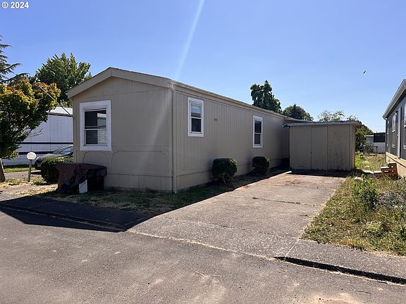 Single level manufactured home in Springbrook Mobile Home Park. This 2 bedroom 1 bath home features new laminate flooring and paint throughout, vinyl windows, new bathroom vanity and an open light filled floor plan. The extra long driveway allows for ample parking and also includes a 12' x 6' storage shed and huge covered deck for year round enjoyment. Springbrook MHP offers a community feel that their residences can appreciate, in addition there is a community center, basketball court, RV storage, play ground and large field for activities. Located close to schools and I-5 makes for an easy commute to Albany or Eugene. This solid property is ready for a buyer to come in and add their final touches. Contingent upon park approval and space rent includes water, sewer & trash. 1989 Marlette priced to sell and sold AS-IS