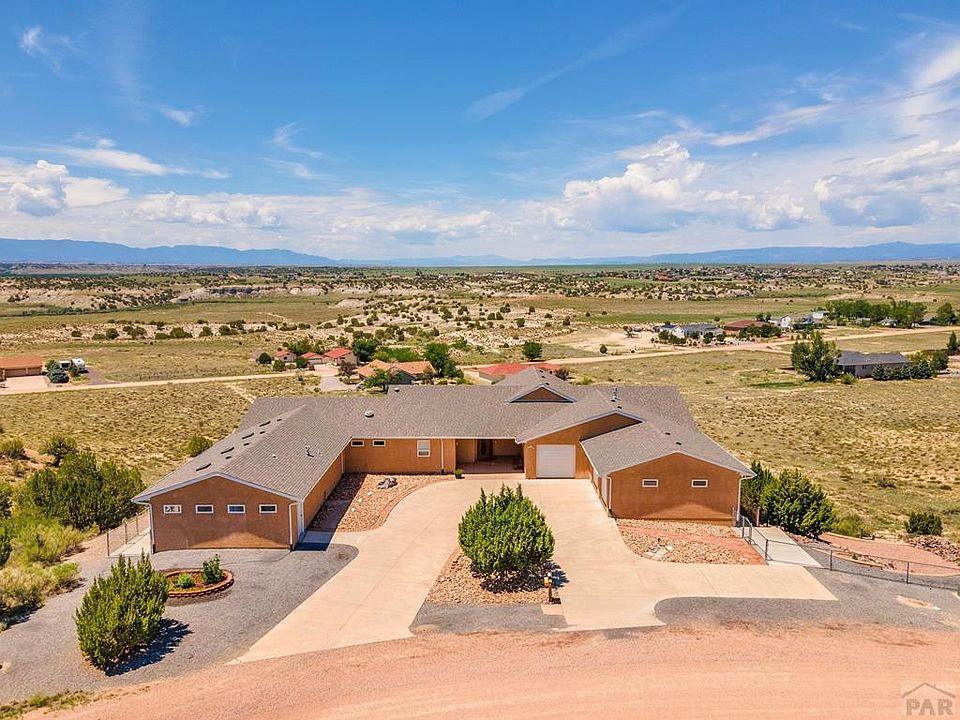 Comfortable living on 4.42 acres. Practicality & low maintenance 4 bedroom/5 bathroom home that has it all. Elevator to access the lower level. Spacious living room w/ vaulted ceiling, gas fireplace & lots of natural light. Kitchen w/ full extension slides in drawers, auto close drawers, cabinets w/ pull-outs, elevated dishwasher, down draft for range, prep sink, mixing shelf that extends out, 24” & 30” ovens, island w/ smooth top range & a breakfast nook. Walk-out to the covered patio w/ mountain views. Main level primary bedroom w/ sitting area, large walk-in closet w/ shelving system. Primary bathroom w/ double sink vanity/make-up counter, soaker tub & walk-in shower. Main level w/ indoor lap pool, hot tub, huge sauna, sink/bar area & a possible home gym area. Wrap around deck. Lower-level w/ 3 large bedrooms, storage room & a family room w/ walk-out. New Roof in 2020. Automatic shades on mail level. Vault room. All switches in the house are X10. Kast marble countertops throughout the home. Garage includes work sink w/ hot & cold water. Located close to the Pueblo Reservoir w/ all the amenities it has to offer.