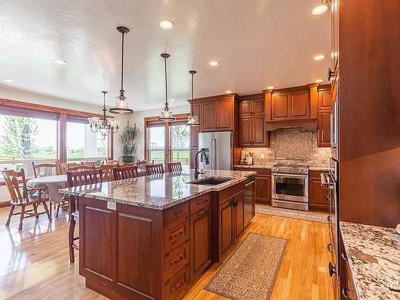 Beautiful custom home w/amazing views on 5 Ac. with natural gas. Located at end of private road. Built w/all the upgrades. Granite counters, travertine tile, hardwood floors, solid wood doors and trim. Chefs kitchen features 2 convection ovens, gas range, and large walk-in panty. Oversized custom closets in all bedrooms. Gas fireplace in living room to cozy up to. Large utility features custom cabinetry and ample counter space. Master bedroom and bath boasts his & hers closets, soaker tub, walk-in shower w/3 heads, dual vanities. Oversized garage w/shelving and work bench, extra room for cars & toys. Large windows throughout home for abundant natural light. Custom cherry wood blinds w/lifetime warrantee. Enjoy your evenings relaxing by the natural gas fireplace outside or under covered patio. Raised garden beds. RV parking w/full hookups. Pasture fully fenced for livestock/horses, frost free water spigot. Irrigation is a breeze w/included sprinkler pipe. Enough provided that it doesn't have to be moved. BTVAI