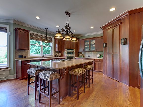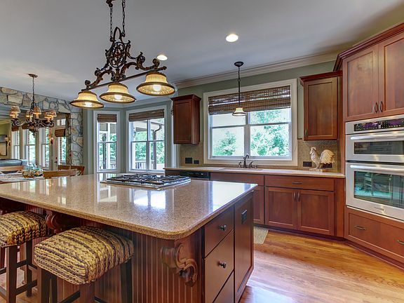 Absolutely stunning, all brick home on a peaceful, waterfront lot in park-like setting! Rocking chair front porch. Beautiful wainscoting and heavy molding throughout. Dream kitchen + sunny breakfast area. Large family rm with coffered ceiling, stone accents and custom built-ins. Formal living and dining. Opulent 25x16 master bedroom + vaulted bath. Spacious bonus rm. Enjoy the amazing views from screened porch, 2 decks, and a "must see" 34x21 patio with pergola, stone fireplace and outdoor kitchen!