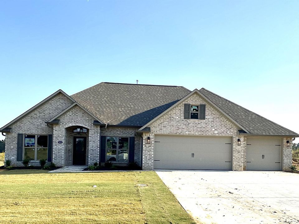 New home. Milan 4 BR 3 BA plus 3 Car garage. What a great floor plan! 3 car garage, Covered back porch. 3 beds on main level with 4th and private bath upstairs. Tile shower in Master with large walk in closet; Open kitchen looks into greatroom with corner gas log fireplace. Form Din room plus eat-n-kit. All LVP on main level. Carpet on stairs and upstairs room. Walk out attic for lots of storage. Estimated completion end of Sept 2023