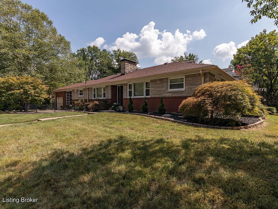Seller has accepted a contract but wishes to continue to show for ''Backup Offers'' / Large roaming ranch on a corner lot on Southwestern Parkway across from the park - Vaulted open eat in kitchen with beautiful island and LG stainless appliances (dishwasher, 5 burner gas stove, and refrigerator with double doors (1 you can see through) and with freezer on the bottom / adjoining the kitchen is the dining room and a living room with stone floor to ceiling fireplace and both are vaulted with the kitchen / home has hardwood floors and tile throughout the first floor / tons of closets / 3 bedrooms / a wood paneled office with built in bookcases / and a bar room / glass shower with VIGO Mateo 6 Jet Chrome shower panel / lower level has a finished bath, family room, and laundry room / 1 car garage is connected to the house with an enclosed breezeway / There is a concrete patio in front of the home with black iron railing and a brick patio in the rear and side leading to the fenced black iron side yard with stone built grill / Seller is providing a one year home warranty through America's Preferred Home Warranty (brochure and confirmation under documents)