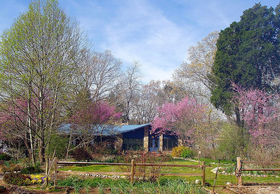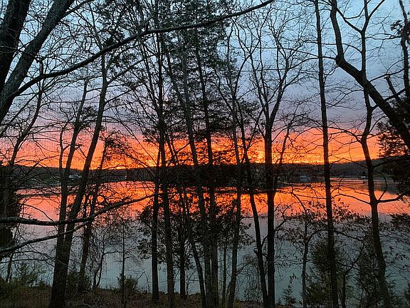 Numerous views of the Lake Loudon; upper and lower screened porches; two wooden outside buildings; open space; two fireplaces; trees; landscaped; split-rail fencing.