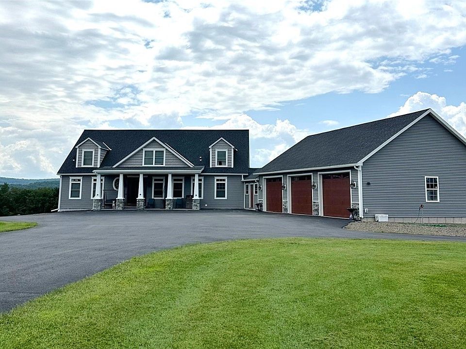 PRIVACY, ACREAGE, and NEW CONSTRUCTION! This 3 Level- 5350 sq.ft. 6+ bedroom 3 bath Cape was completed in 2019 with a 3-car attached garage, 40 X 50 slab for additional structure, 2 room hunting cabin, on over 42 surveyed acres of land with trails, woods and pastures! Open concept on main floor, formal dining room, coffee bar, large kitchen with CAMBRIA QUARTZ countertop CENTER ISLAND! All STAINLESS-STEEL appliances: double ovens with warming drawers, 6 burner gas cooktop and double dishwashers and walk-in pantry! ½ bath and a laundry room with a breezeway entrance to the garage. First floor master ensuite with walk out to the back porch, master bath has a separate lavatory, tiled shower, soak tub and double sink. The walk-in closet with built ins and plenty of drawers for organization. 2nd floor has 3 bedrooms, full bath & large RECREATION ROOM with loft! Wonderful Guest Quarters or IN LAW SUITE in the walk out basement w/separate entrance on the back patio. Full eat in kitchen, huge space for a family room/game room, 2 bedrooms, a full bath and a den! A full house generator and outdoor wood burning furnace. The 2-room cabin is wired for electricity. Less than 3hrs from GWB