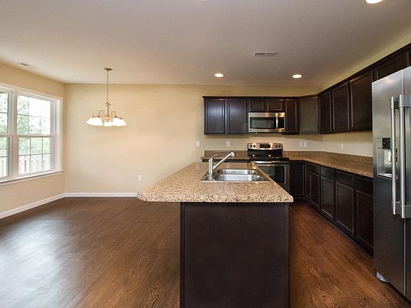 Close to everything yet 100% financing USDA eligible! This four bedroom, two bath home is less than two years old and is better than new! Truly move-in ready, this immaculate home has three bedrooms on the main level and a bonus or fourth bedroom upstairs. Wide open spaces on the main level to include a large living room, dining nook and kitchen! Generous counter top space in the kitchen with long extended counter tops and kitchen island. Stainless steel appliances to remain including upgraded stainless refrigerator. This kitchen also comes with an extra large pantry! Living room displays a view of the 6 acre pond through the large windows to the backyard. The master also captures a beautiful view of the pond and has a full bathroom to include double sinks, large soaking tub, extended shower, and private water closet. Laundry room close by the master and living spaces. Step outside under the covered porch to enjoy nature sounds from the pond close-by or take a few extra steps with your fishing poll to unwind in this peaceful community amenity. Close to the cul-de-sac, this home boasts wonderful curb appeal with professionally landscaped beds and side yard. Oversized garage and plenty of storage throughout. Come check out this quiet community just beside the East West Parkway and Hanna Schools!