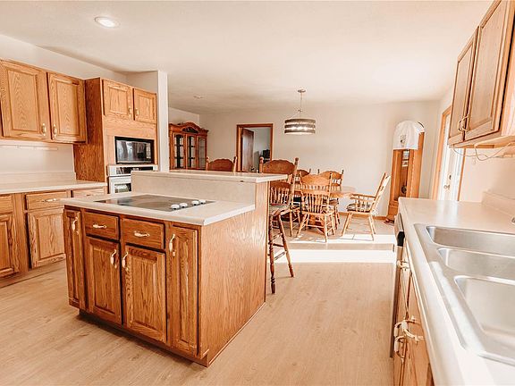 Mini Farm in the Making with so much space! Bring the kids and the animals to this charming property located in the county off a paved road with a convenient circle drive. The home has been recently updated with professionally installed luxury vinyl floors, fresh paint, and a new deck across the back. The main level features three spacious rooms, a large living and dining area, and a kitchen with an island, built-in smooth top range, and built-in oven. Enjoy easy access to the large deck through a new glass door from the laundry area. Don't overlook the potential of the lower level basement, which previously accommodated a family of four. It includes a kitchen area, living space, three additional rooms, storage, and a bathroom with laundry hookups. The surrounding land is perfect for creating your mini farm, offering two small ponds, a barn with character, some fencing, and a small older shed. This property is a dream waiting to be realized! Additional Rooms: Mud Room