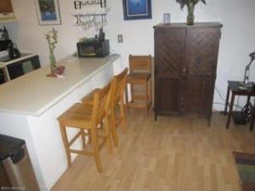 Updated in 2011: New: Interior Paint, Counter Tops, Kitchen Vinyl, Light Fixtures, Interior Doors, & Bath Vanity. Oven/Range and D/W are 2 yrs old. Laminate flooring in Living Rm and hallways. Wood burning FP in LR. Storage unit on Balcony. 1 car parking space in common garage. Ref/W/D stay (SBOS).