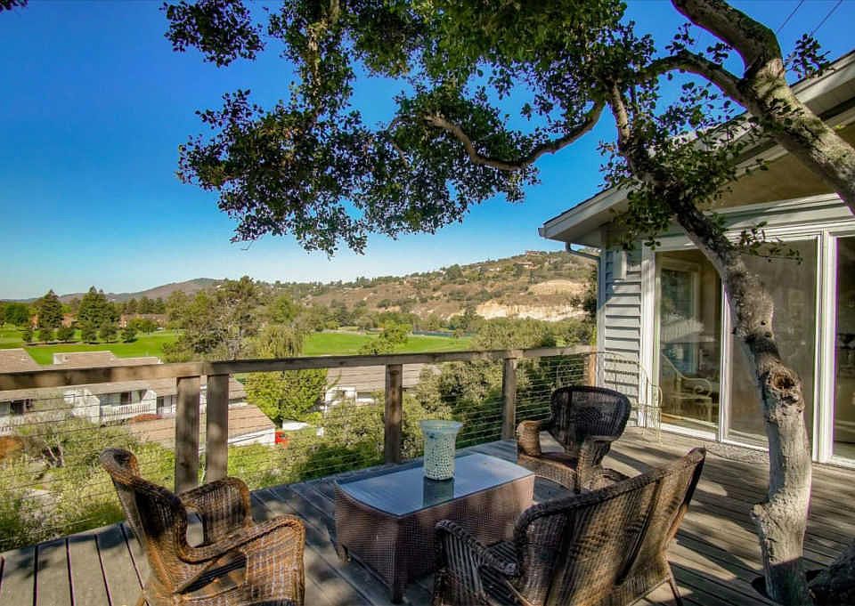 Luxurious, light, bright, spacious, private, warm, and sunny describes this rare single-family home located behind the gates of Carmel Valley Ranch. This custom-built residence, located in the coveted Oakshire neighborhood, has fantastic indoor space along with an incredible use of outdoor space with well over 1800 square feet of al fresco decking. You will love the high vaulted ceilings, perfectly placed windows, and the fantastic views of the golf course and valley walls. This home has a large master retreat on the main level, along with a European style kitchen, a breakfast nook, formal dining room, a fantastic living room with a wet bar and a powder room. The lower level includes an additional spacious bedroom suite, an amazing family room with fireplace, an arts and crafts room that could be a 3rd bedroom, plus a kitchenette. In addition, there is a detached guest casita with a living area, a bedroom, and a bath plus a 2-car garage. If you come see it, you will want it!