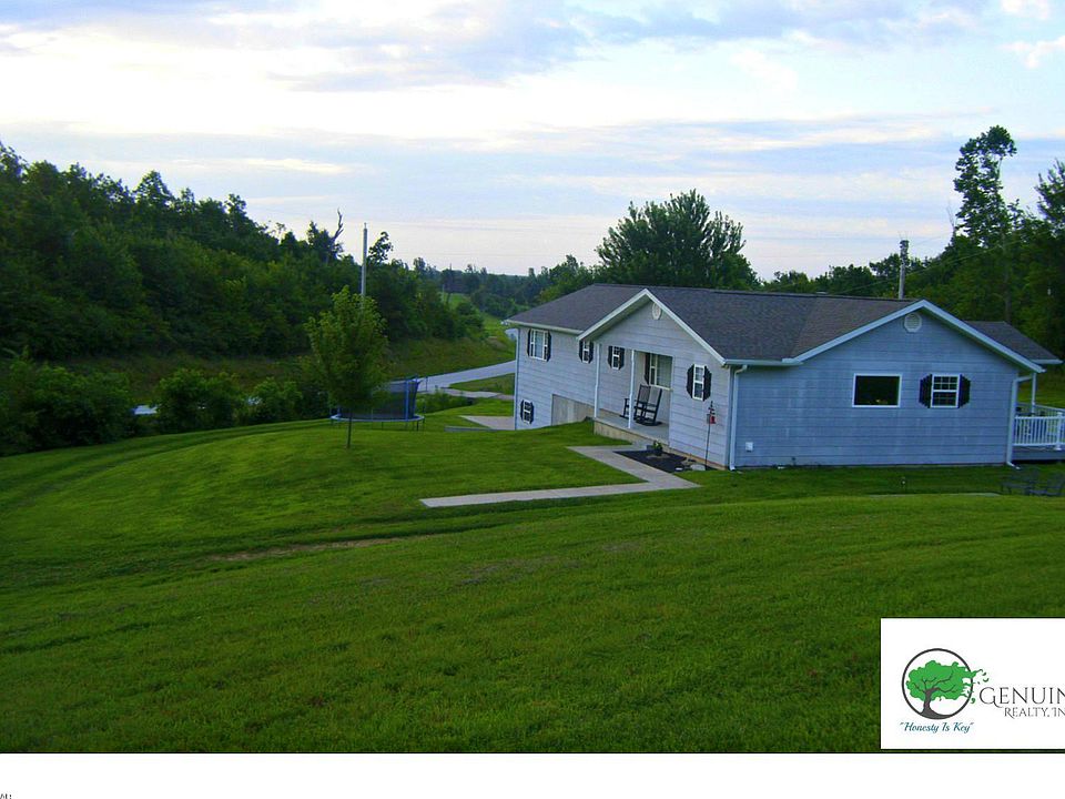 Beautiful custom built home on an acre outside city limits. Open floorpan, wood floors throughout. Lots of storage, quiet location, maple trees in front yard.Large concrete storm shelter with door that opens to inside.
