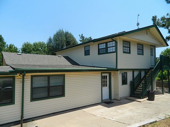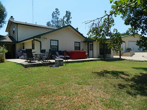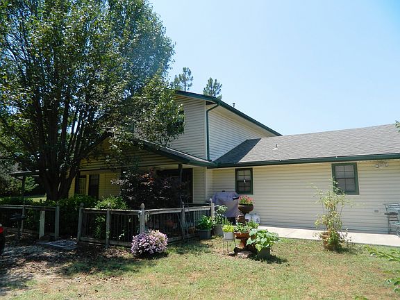 Home sits on beautiful and wooded 5.02 acres. Gated drive to home. Home offers lots of space. Open layout, tiled floors in main living area, stone fireplace. Game room off back of home with wet bar/kitchenette. Mater suite is down. Two beds up with full bath. Workshop/garage & barn located on property. Darling front porch for relaxing. No city noises. Private 5 acres.