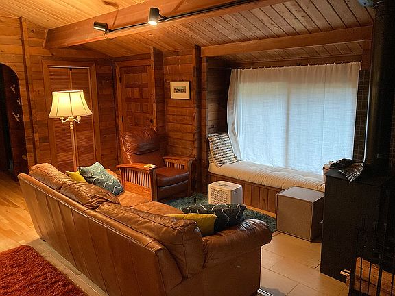 Wonderful hillside Pan abode cedar log cabin creekside, just feet from lake. Completely renovated in 2020 through 2024. New maple floors and wool carpets. New plumbing throughout. New roof, gutters, downspouts, roof structure and roof insulation. New European wood stove, tile work and flue that heats the entire home. New Hauer stainless kitchen appliances, water heater and washer/dryer. New walk-in shower, toilet and facet. Existing lower Wood retaining wall replaced with new gabbion (Stone filled wire basket) retaining wall. Complete new deck rebuild with new handrails completed. HOA includes water & sewer and community property maintenence. Community dam capital assessments paid in full. Possibly fully furnished as option. Courtesy to brokers!!