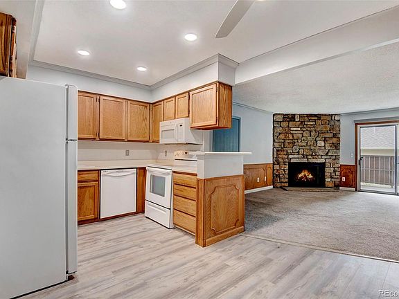 Immaculate 2 bedroom property features a spacious and functional layout. Enjoy the large covered patio, updated vinyl plank flooring in the kitchen, completely remodeled bathroom, a large, eat-in kitchen, and the cozy fireplace the family room. No stairs. Ptarmigan Condos offers a swimming pool and tennis courts for fun in the sun. Wheat Ridge is renowned for its scenic beauty and outdoor recreation and this ideal location perfectly balances urban accessibility with suburban tranquility. Explore the nearby trails, parks, and open spaces. Commuters will appreciate the proximity to major highways, ensuring a seamless journey to Denver and beyond.