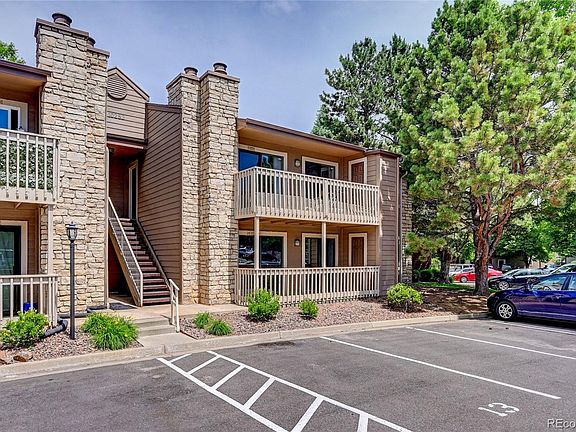 Come see this newly available 2 bed 2 bath move-in ready condominium! Open concept floorplan. Living room has a nice fireplace with patio access. Tiled kitchen flooring. Frigidaire stainless steel appliance package. Master Bedroom has a spacious walk-in closet and in suite bathroom with updated countertop, large oval soaking tub, and great tile finishes. 2nd bedroom has fabulous built in shelving, plenty of closet space and access to the private patio. 2nd full bathroom also has access to the laundry room. Full size washer and dryer are included. Brand new electrical panel! Central A/C and furnace have been upgraded. Private storage closet off patio area, seasonal swimming pool and TWO assigned parking spaces! Storage room is accessible from the patio. GREAT Location near DTC. Only 1.2 miles to catch the light rail. Trail system access from inside this community. Restaurants and shops are within walking distance. Located in the Cherry Creek School District!