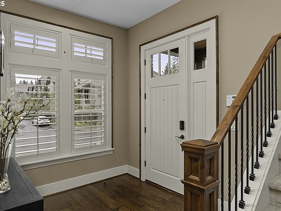 Sought-After End Unit Luxury Townhome in Peterkort – Renaissance-Built with Upscale Autumn Lodge Package! Step onto the covered front porch and into a spacious entryway featuring beautiful hardwood floors throughout the main living areas. The entertainer’s gourmet kitchen is a chef’s dream, complete with an oversized island, slab granite countertops, custom tile backsplash, gas cooktop, stainless steel appliances, and abundant cabinetry & counter space. The adjacent family room is enhanced by newer custom built-ins, a cozy fireplace, and box-beamed ceilings, with double doors opening to a covered deck—perfect for year-round enjoyment. The formal dining room, also featuring box-beamed ceilings, adds an extra touch of elegance.A main-floor bedroom and full bath provides flexibility for guests or an office space, while plantation shutters throughout enhance the home’s sophistication. Upstairs, the luxurious primary suite impresses with a spacious walk-in closet and a spa-like ensuite bath featuring a dual vanity, tile shower, and a soaking tub.The lower level offers a media room and a custom-designed storage room with built-in cabinets and counters—ideal for hobbies or organization. The oversized two-car garage includes ample storage and an electric car charger for added convenience.This exceptional townhome offers a perfect blend of luxury and functionality in a prime location. Meticulously maintained and move in ready. Don't miss your chance to own this rare end-unit gem!