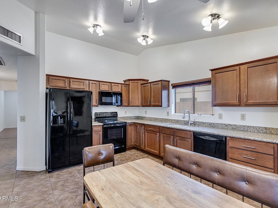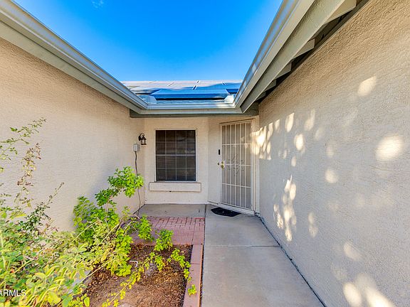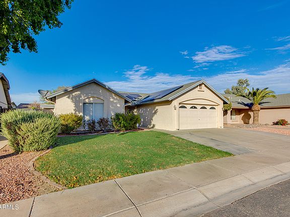 Lovingly maintained by the same owner for the last 25 years. This home exudes pride of ownership from the moment you walk in. Home has completely new plumbing. New roof, beautifully refreshed kitchen, updated with modern appliances that blend seamlessly with the home's warm character. New ceramic tile throughout the home. The bathrooms boast new fixtures, and the solar system ensures energy efficiency. Step outside into a peaceful backyard oasis, complet State Farm Stadium and lively Westgate Entertainment District for a variety of dining and entertainment options. with a GARDEN, HUGE GRASS LAWN, COVERED PATIO AND SHEDS, perfect for outdoor relaxation.