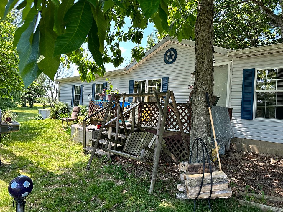 Peaceful Living waiting for you! This home is a 3 bedroom, 2 bathroom home on 4.7 acres. Sit out on your private deck and enjoy the sounds of nature from the private pond included! Acreage includes a private fishing pond, permanent cold smoking system, lots of fruit trees and multiple storage buildings! A 30x40 Quonset was built in 2018 providing ample amount of storage. New siding, roof and gutters in 2017 and New HVAC in 2023. Property has a garage and 2 storage sheds. Inside the home you will enjoy a gas fireplace and ceiling fans throughout the home!