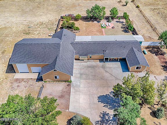 Priced to sell! Owners moving out of state! Searching for a generously sized single-story home that offers tranquility while still being close to the action? Enjoy mountain views and country living in this furnished gem conveniently set just 6 miles from all Flagstaff has to offer! Standing proud on 2.48 acres, it features 5 bedrooms and 3.5 baths across an impressive 3,468-sq ft layout. Crafted with the avid entertainer in mind, the open-concept family room has a wet bar that beckons you to grab a drink after a long day. Skylights fill the heights of the vaulted ceiling with radiant sun, and a wood-burning stove keeps you warm as you unwind. Share meals in the adjoining dining room before taking in splendid vistas of the San Francisco Peaks from the living room where another stove awaits The stylish kitchen equips you with white shaker-style cabinetry beautifully contrasted by black appliances, including a new dishwasher and microwave. Quartz countertops afford ample prep space, and an expansive walk-in pantry has ample room with plenty of shelving. Dual walk-in closets and a 6-piece ensuite equipped with a jetted tub alongside an oversized shower with two heads and side nozzles make your primary bedroom like having your own private spa! The south side of the residence has a separate entrance leading to a versatile 4-bedroom, 2-bath wing, ideal for a growing family, in-law quarters, or an income generating opportunity such as a vacation rental, short-term employment/ travel rental (Furnished Finder), or a board and care. Current owners operated a very successful Airbnb and had guests from all over the world. Unwind to enchanting views on the covered back porch, or treat yourself to the stress-relieving spa. Fencing and trees provide privacy and plenty of room for little ones and furry pals to roam. Other perks include an oversized garage, an RV garage, newly installed windows and shutters, and no HOA. Come for a tour today! Central air added in both sides of the home in 2021 Luxury vinyl flooring in 2021 in bedrooms on south side of home Shutters in the great room 2021 New windows on west facing part of the house May 2023 (18,000)