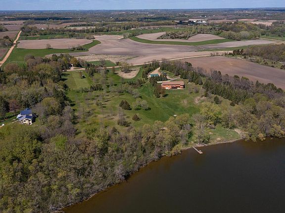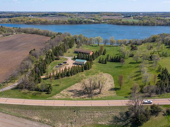 One owner, custom built, walk out rambler that rests on 12.6 acres nestled between Minnetrista and Watertown with 515 feet of sandy shoreline on Mud Lake. Wonderful south views! Outstanding 40x28 pole shed with heated floors and lift. There is also an 8 foot overhang for extra covered storage. Asphalt and concrete driveway leads up to the home with a 35x35 spancrete garage. There are three more potential stalls below. Step inside and find vaulted ceilings, hardwood floors, and an open concept from the kitchen to living room. Sliding glass door leads out to the large low maintenance deck breathtaking and lake views. Three main level bedrooms, including a large master suite with additional sitting room and master bath. There is also main level laundry. Walkout lower level provides great entertainment space next to the wet bar as well as the 13x12 game room. Large media room offers an area for in home theater. Lower level has in floor heat plus high efficiency furnace and water heater.
