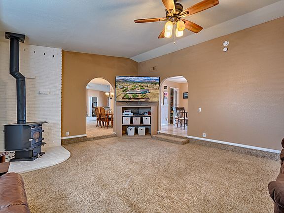 Come and take a look at all of the space in this single level 5 bedroom house! Inside enjoy solid surface stone countertops in kitchen and bathrooms, extra large walk through pantry, spacious bedrooms, extra office/den area, two living areas, wood stoves, and a floor plan that has great flow. The back yard is huge and fenced and the back covered porch is literally the length of the house so you can see 180 degree views of the mountains. At night jump into the hot tub and star gaze. Need space for your RV? Pull it into the RV garage at night. The entire roof replaced and APS Energy Star Improvements both done in 2019. This home has been meticulously taken care of, come and make this your forever home today!